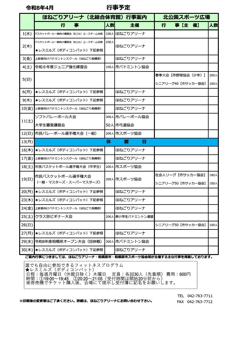 令和8年4月の行事予定