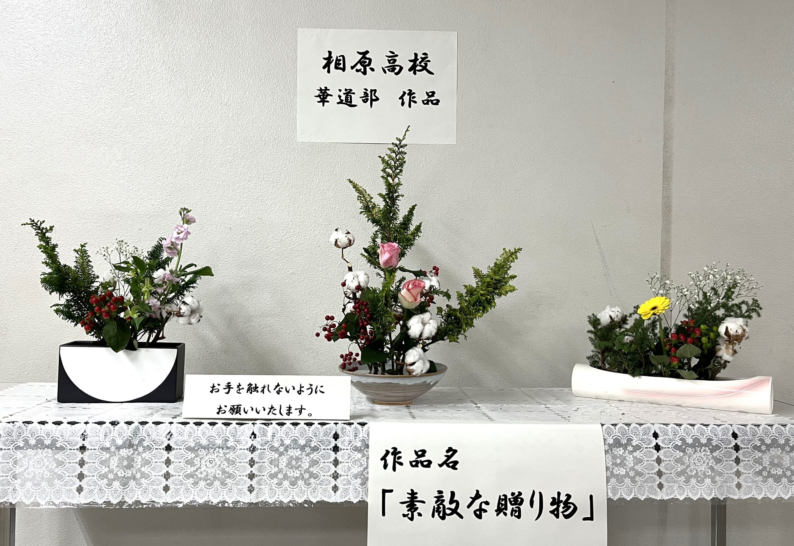 神奈川県立相原高校華道部の皆様に生け花の展示をしていただきました。
